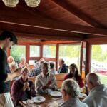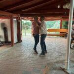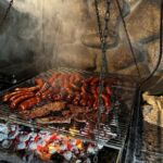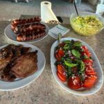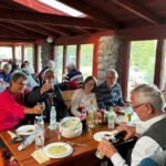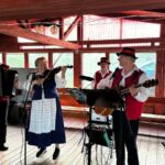 Am Abend versammelten wir uns dann alle in der Holzhütte mit tollem Ausblick. Angelockt wurden wir durch einen verführerischen Geruch nach gegrilltem Essen. Es wartete bereits die Folkloregruppe auf uns, diese begann kurz nach unserem Eintreffen mit ihren masurischen Liedern. Viele Melodien kamen dem ein oder anderen hierbei bekannt vor. Wir starteten mit einer typischen hausgemachten Suppe mit einem leicht säuerlichen Geschmack und üppigen Inhalt (Kartoffeln und Gemüse). Anschließend konnten wir Grillfleisch und Wurst mit schmackhaften Salaten genießen, bevor wir mit einem kleinen Dessert das Essen abrundeten. Zu den Klängen der Folklore Musik wurde teilweise getanzt und geschunkelt – es war auf jeden Fall ein gelungener Abend.