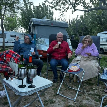 In der Abendsonne sitzen wir noch beisammen, bis uns der kalte Wind in die warmen Wohnmobile zwingt.