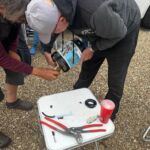 Abends treffen wir uns zu unserer obligatorischen Besprechung. Da ist ein Fässchen Bier wieder mal sehr willkommen. Dieses zu öffnen, war eine echte Herausforderung; auch die haben wir gemeinsam gemeistert. Danke an den Spender!