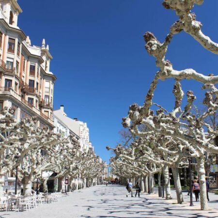 Auf der Flaniermeile, Consulado del Mar, können wir die schönen Miradores (verglaste Balkone) und die Platanenallee, deren Äste miteinander verwachsen sind, anschauen.