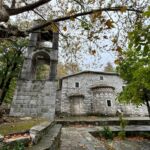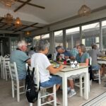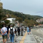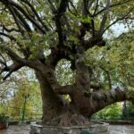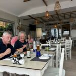 Pünktlich zu unserer Abfahrt setzt leichter Regen ein, der uns heute etwas länger begleitet. Wir starten unsere Rundfahrt Richtung Ostpilion. Wir durchfahren das Dorf Xourichti und machen unsere erste Pause in Tsagkaranda, dem größten Dorf in Ostpilion. Dort gibt es eine über 1000-jährigen Platane zu bewundern. Nach einer ausgiebigen Kaffeepause fahren wir weiter durch das Dorf Mouresi nach Kissos. Es ist das höchstgelegene Dorf in Ostpilion. Dort besichtigen wir die sehr schöne Kirche Agia Marina aus dem 17. Jahrhundert. Besonders ihr Altar ist sehr eindrucksvoll. An der Erstellung wurde über 60 Jahre lang gearbeitet. Er ist aus Holz, teilweise mit Blattgold überzogen und 14 Meter breit und sieben Meter hoch. Die Kirche gilt als eine der schönsten Griechenlands. Wir setzen unsere Fahrt fort, um in Agios Ioannis eine ausgiebige Mittagspause einzulegen. Der Regen hat aufgehört und die Sonne sorgt für gute Stimmung. Theo, unser Guide für heute, erzählt uns während der Fahrt viele interessante Dinge über das Leben in Pilion und die vorhandene Flora und Fauna. Durch weitere Bergdörfer und das Skigebiet des Pilion auf fast 1.300 m ü. NN erreichen wir die Grenze zwischen Ost- und Westpilion. Wir fahren weiter westwärts und erreichen das wohl schönste Dorf des Pilion, Makrinitza. Es erstreckt sich bergwärts über mehrere hundert Höhenmeter. Es gilt als der Balkon des Volos, da man von hier oben einen fantastischen Blick auf Volos und den Pagasitischen Golf hat. Wir machen eine Pause auf ca. 800 m ü. NN, laufen gemeinsam zum Dorfplatz mit seiner besonderen Platane. Sie ist zwar innen sehr hohl, erfreut sich trotzdem guter „Gesundheit“. Kleine Lädchen bieten vielerlei Waren aus der Region an und freuen sich über unseren Umsatz. Über weitere Dörfer, vorbei an der Großstadt Volos, erreichen wir wieder unseren schönen Campingplatz. Wir bedanken uns bei Theo und Stephan, unserem Fahrer und finden alle, dass es ein sehr gelungener Ausflug war. Nach einer kurzen Abstimmung zum bisherigen Reiseverlauf und einem Gläschen Tsipouro gehen wir zum gemütlichen Teil des Abends über.