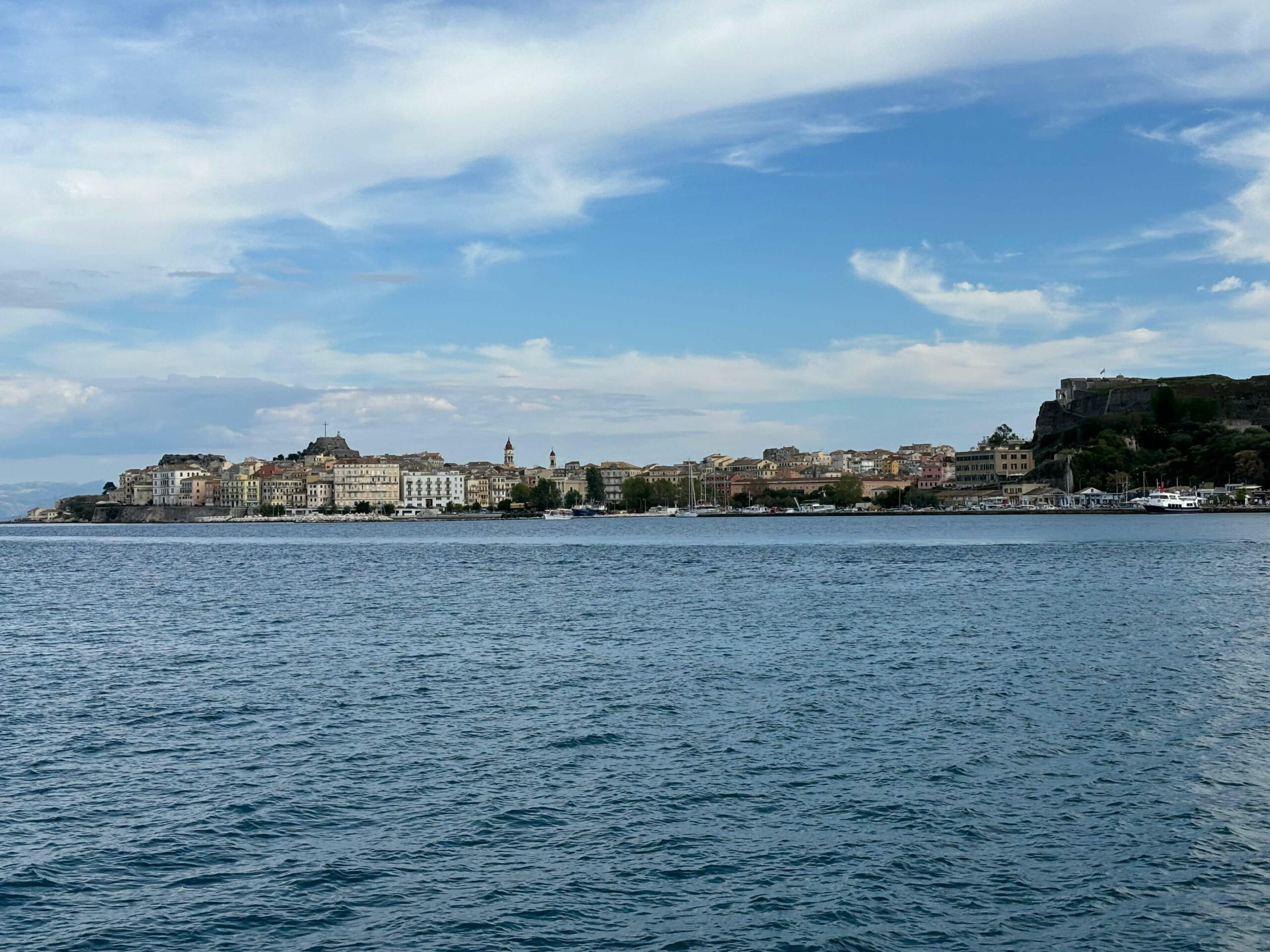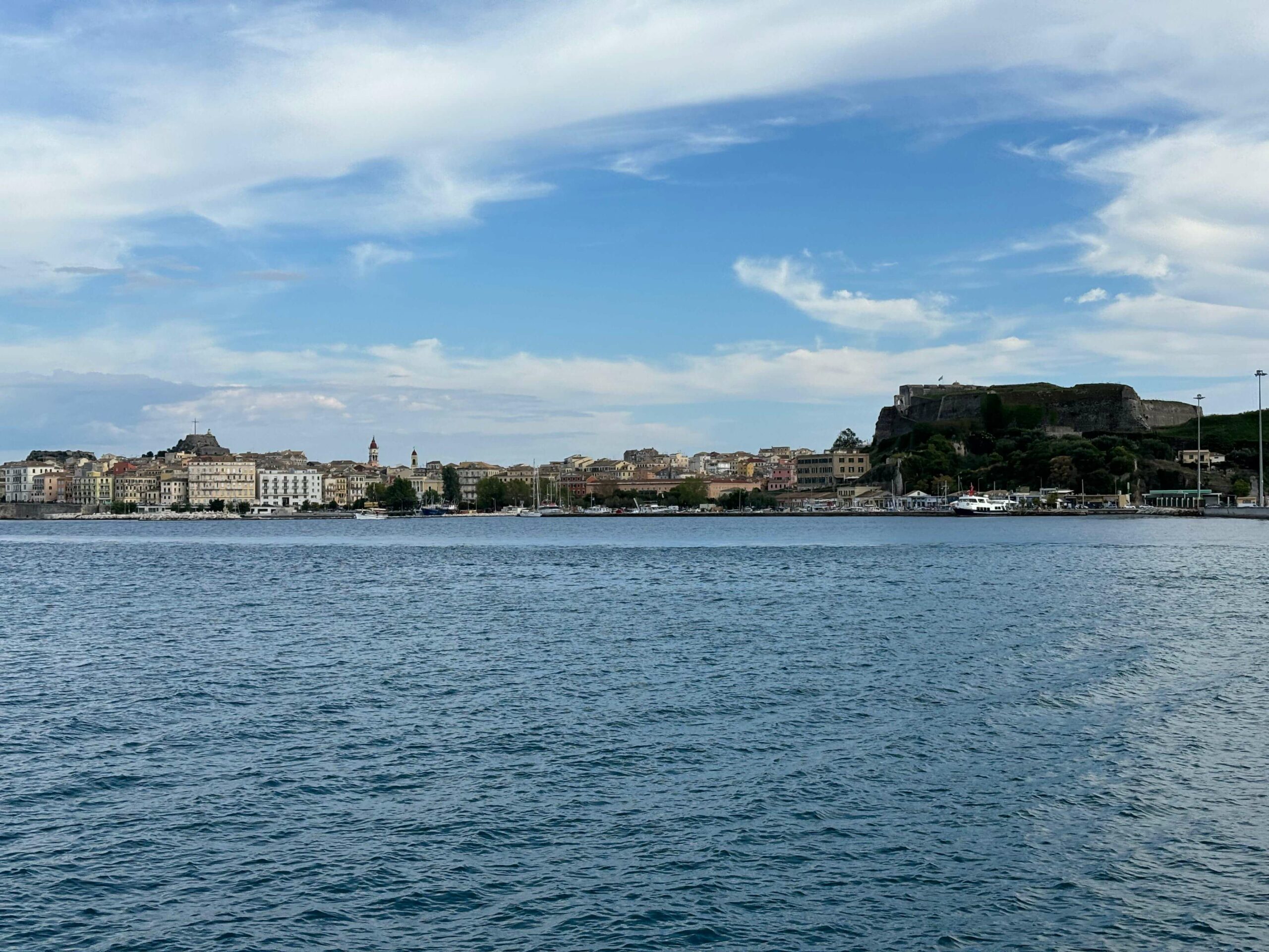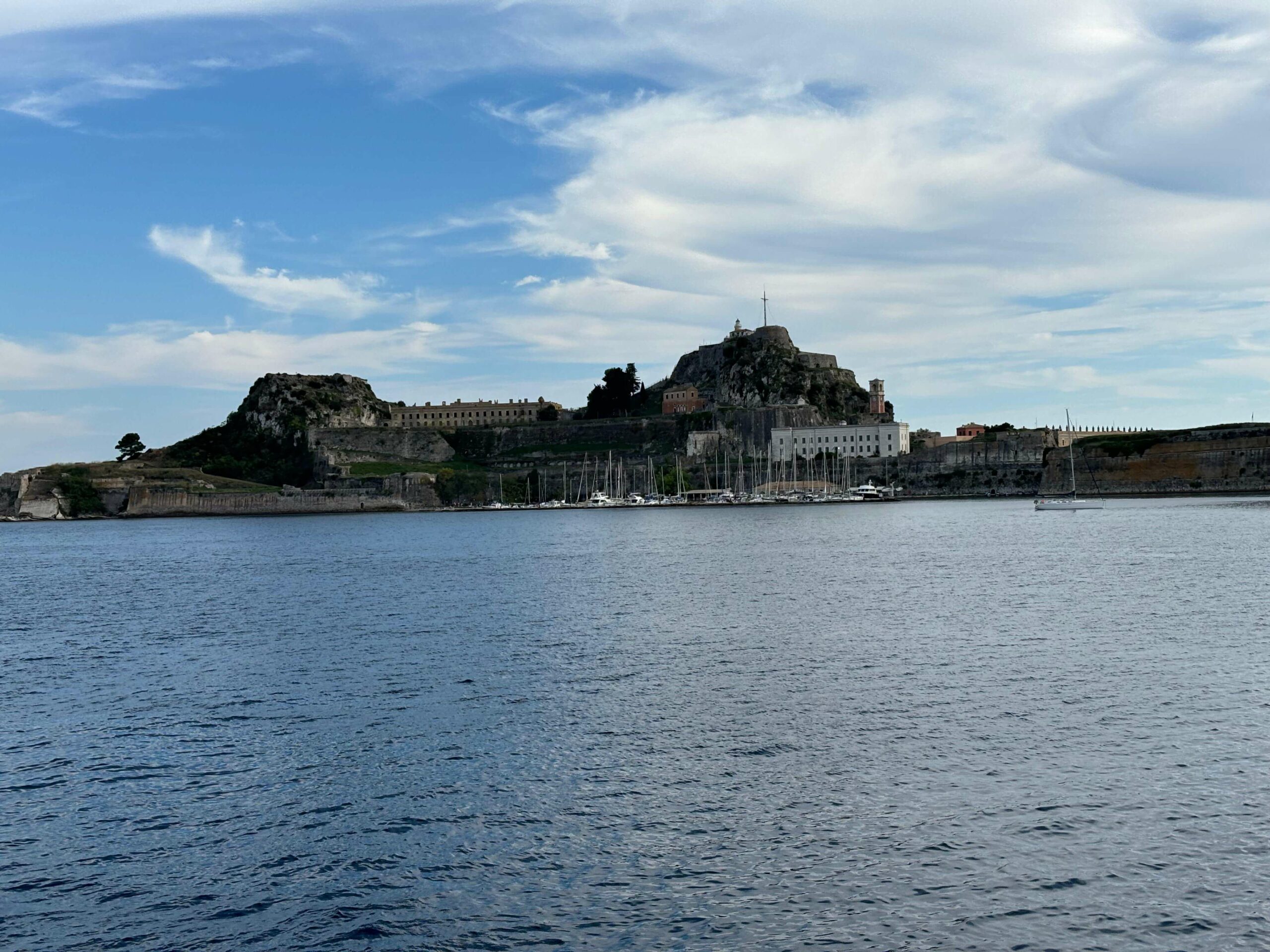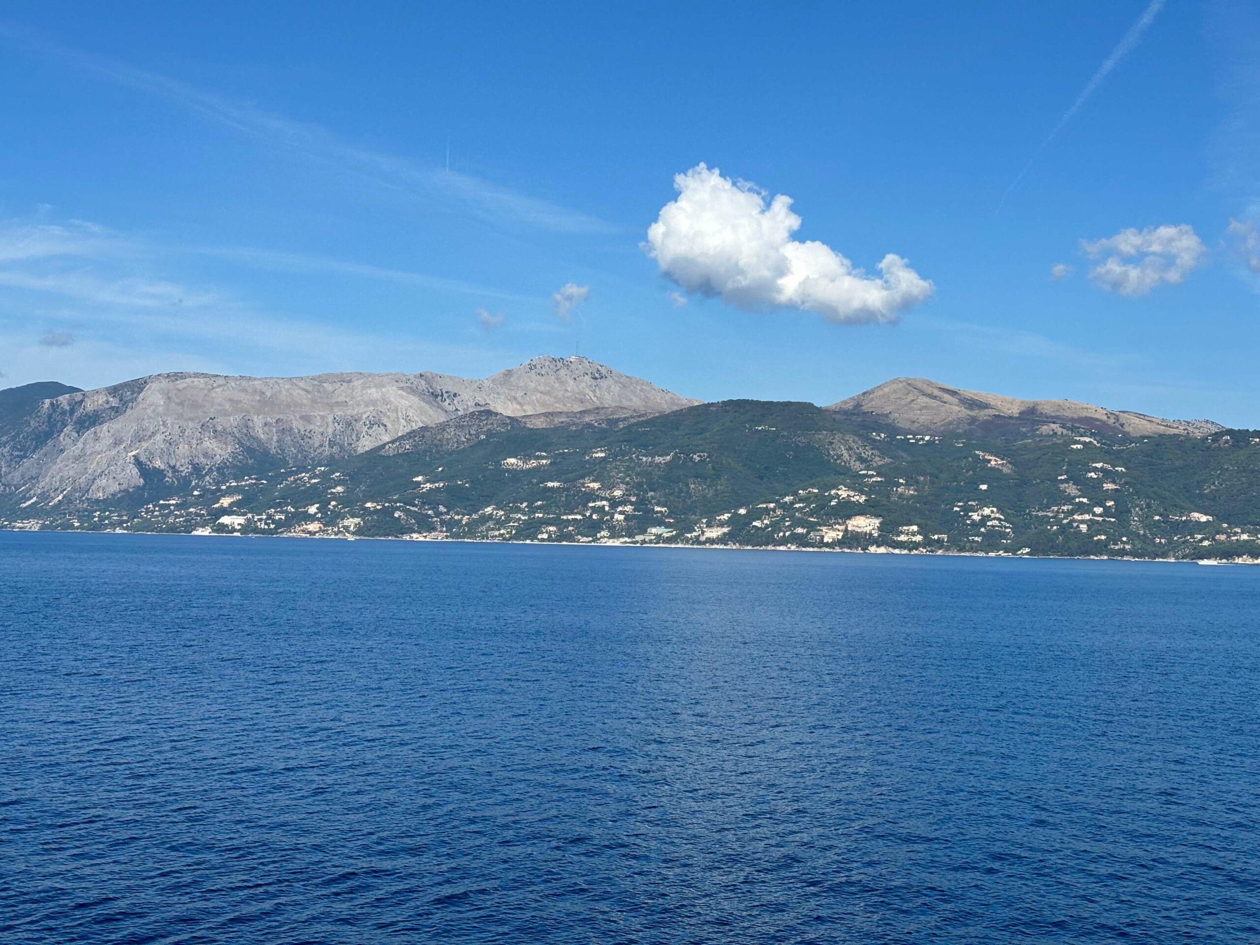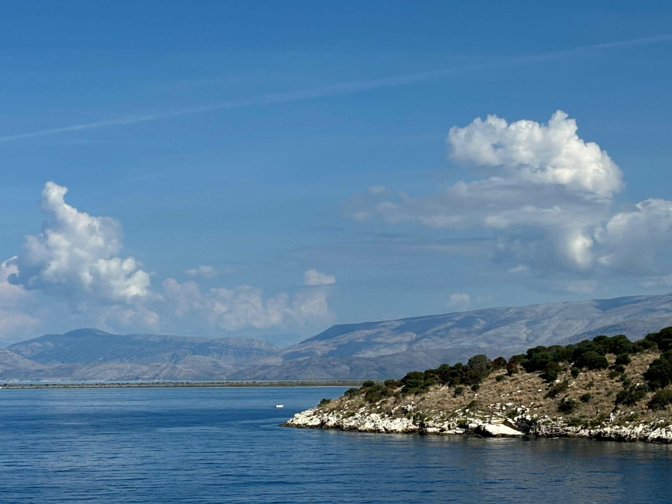 Nach einer ruhigen Überfahrt durch Adria und Mittelmeer erreichen wir bei bestem Wetter gegen Mittag Igoumenitsa. Hier wechseln wir kurz vom internationalen in den nationalen Hafen. Um 15:30 Uhr geht es mit der Fähre zu unserem Ziel für die nächsten zwei Tage, nach Korfu. Nach kurzer Fahrt erreichen wir gut gelaunt gegen 17 Uhr die Insel und nehmen die Fahrt zu unserem ersten Campingplatz in Angriff. Nachdem alle ihren Platz gefunden und sich eingerichtet haben, treffen wir uns zu unserer ersten gemeinsamen Besprechung. Mit einem Gläschen Sekt stoßen wir auf eine gute und unfallfreie Rundreise an. Nach einer kurzen Vorstellungsrunde besprechen wir die notwendigen organisatorischen Dinge der Tour und das Programm für die nächsten zwei Tage auf Korfu. Am Abend gehen einige in eines der vielen Restaurants am Strand oder am Campingplatz zum Abendessen. Andere gehen schnell auf eine Runde schwimmen ins Mittelmeer oder entspannen im Wohnmobil.