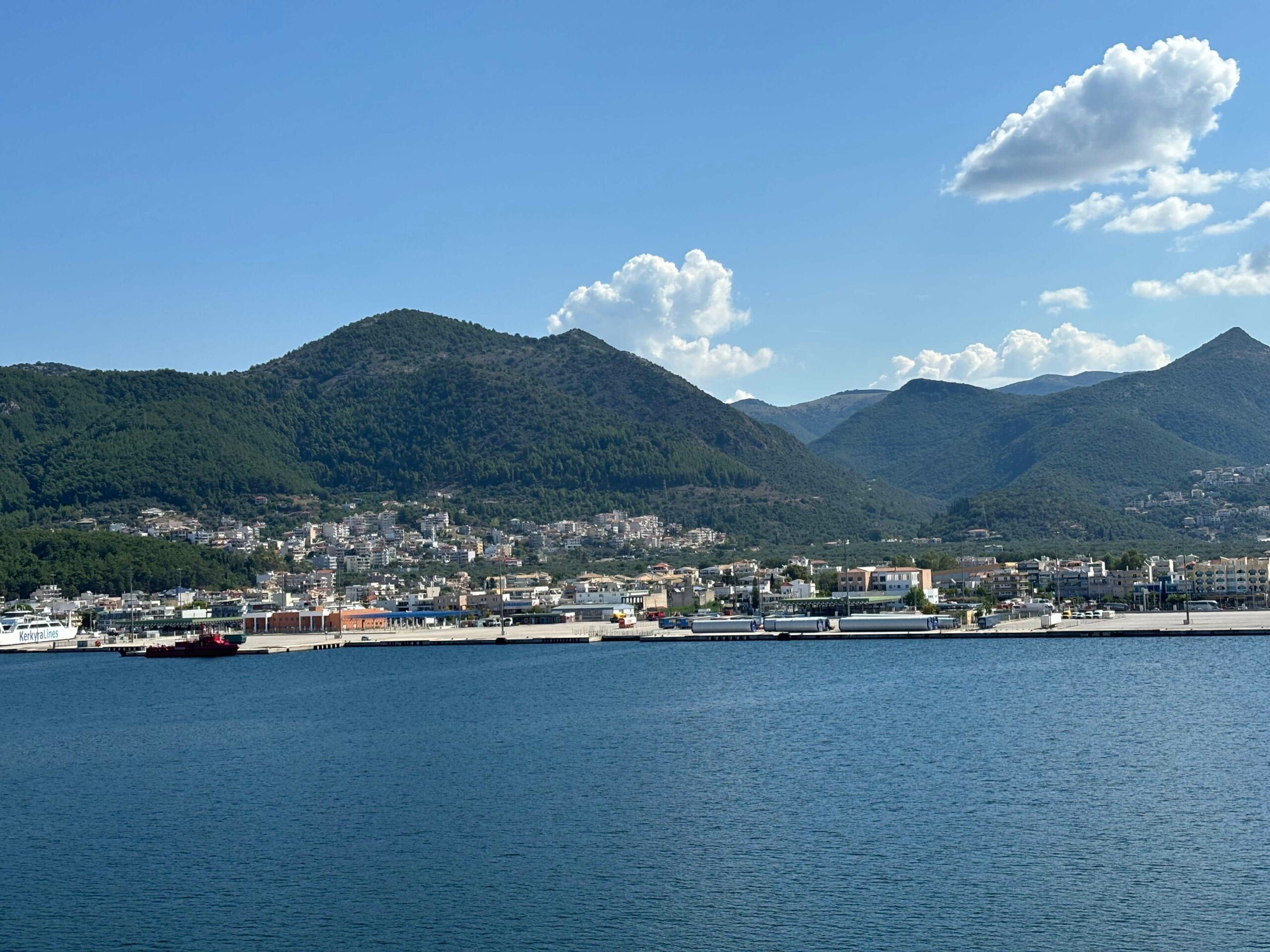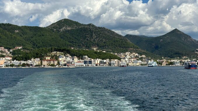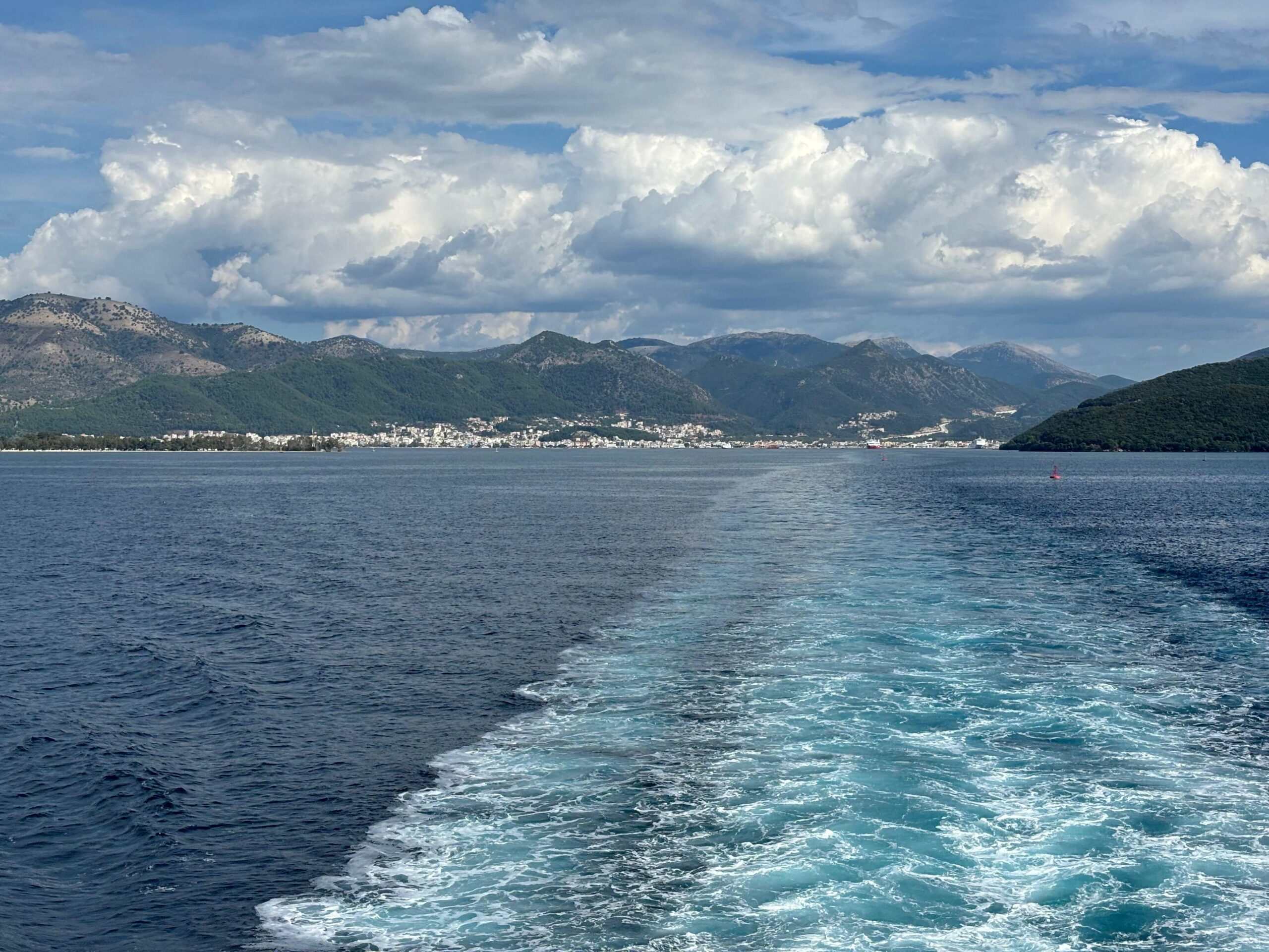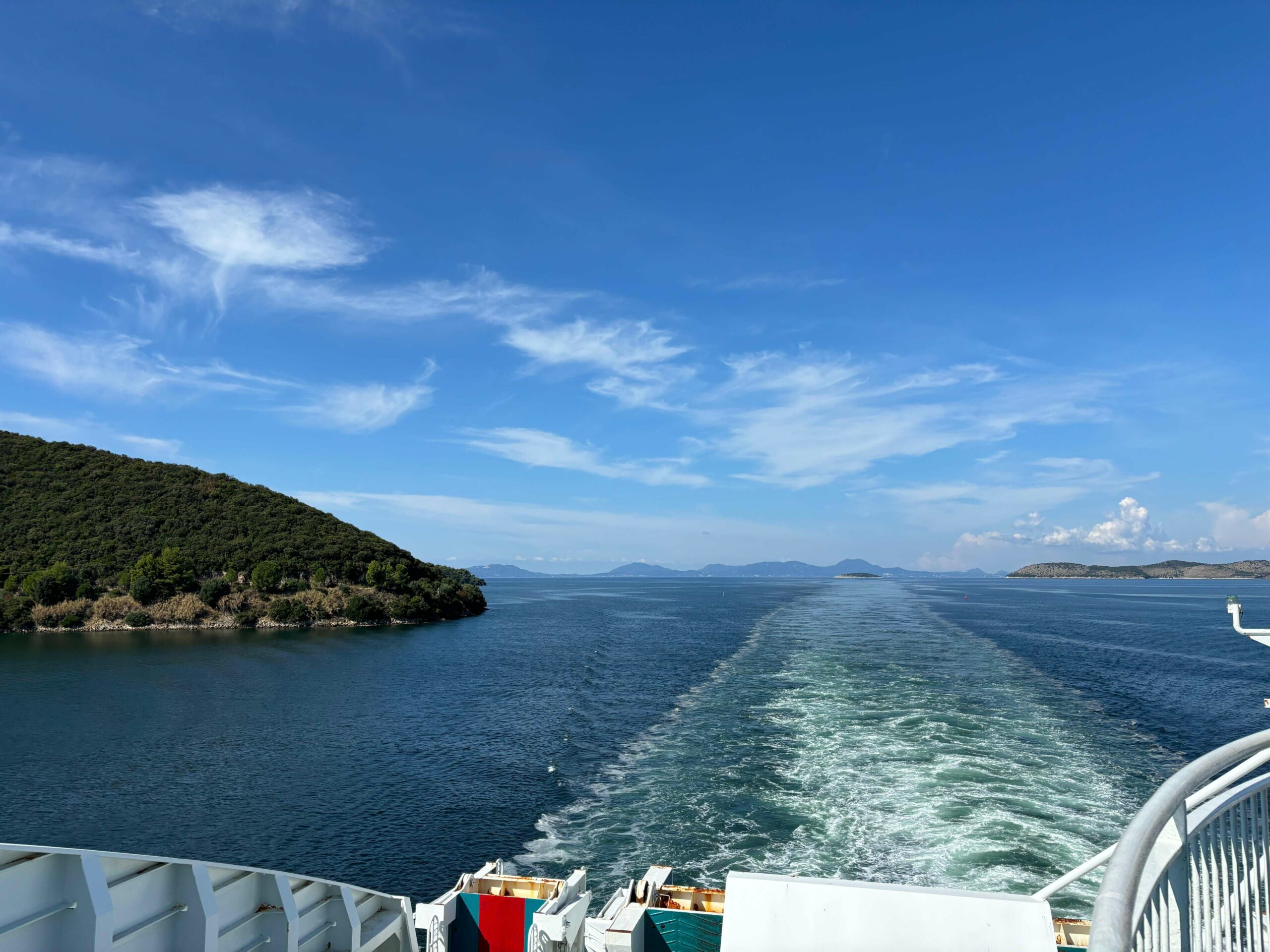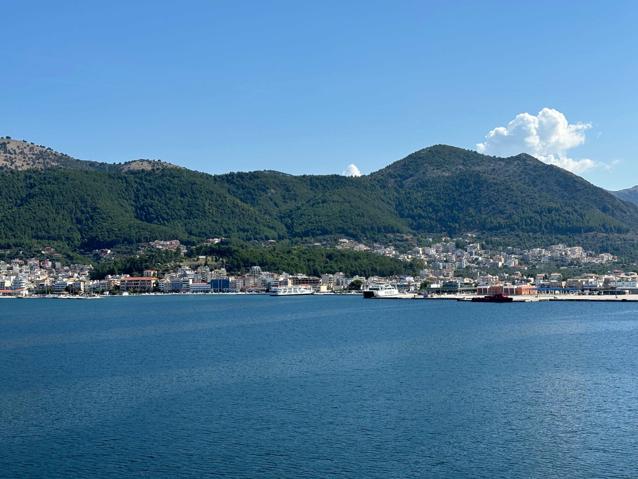 Nach einer ruhigen Überfahrt durch Adria und Mittelmeer erreichen wir bei bestem Wetter gegen Mittag Igoumenitsa. Hier wechseln wir kurz vom internationalen in den nationalen Hafen. Um 15:30 Uhr geht es mit der Fähre zu unserem Ziel für die nächsten zwei Tage, nach Korfu. Nach kurzer Fahrt erreichen wir gut gelaunt gegen 17 Uhr die Insel und nehmen die Fahrt zu unserem ersten Campingplatz in Angriff. Nachdem alle ihren Platz gefunden und sich eingerichtet haben, treffen wir uns zu unserer ersten gemeinsamen Besprechung. Mit einem Gläschen Sekt stoßen wir auf eine gute und unfallfreie Rundreise an. Nach einer kurzen Vorstellungsrunde besprechen wir die notwendigen organisatorischen Dinge der Tour und das Programm für die nächsten zwei Tage auf Korfu. Am Abend gehen einige in eines der vielen Restaurants am Strand oder am Campingplatz zum Abendessen. Andere gehen schnell auf eine Runde schwimmen ins Mittelmeer oder entspannen im Wohnmobil.