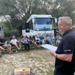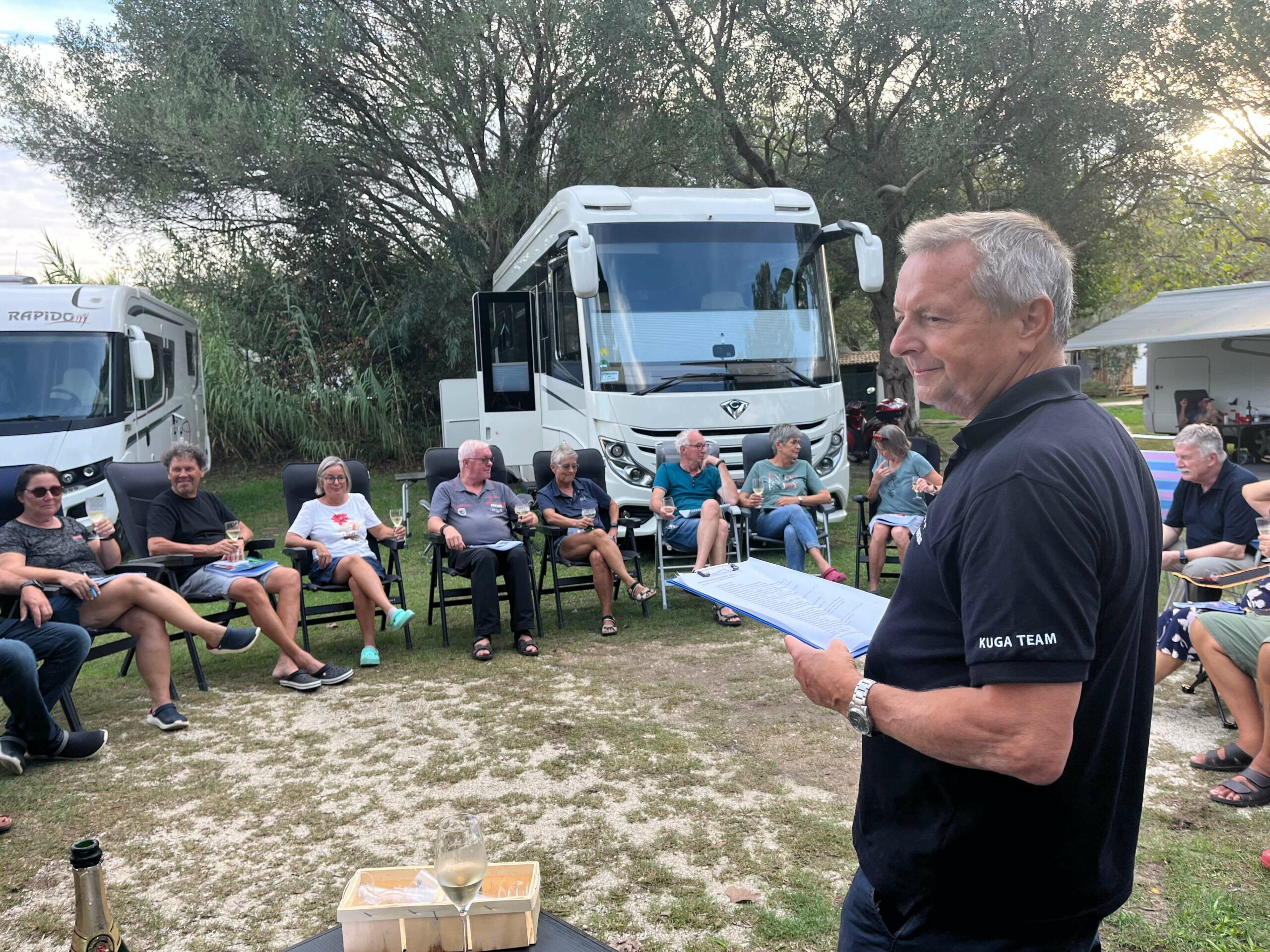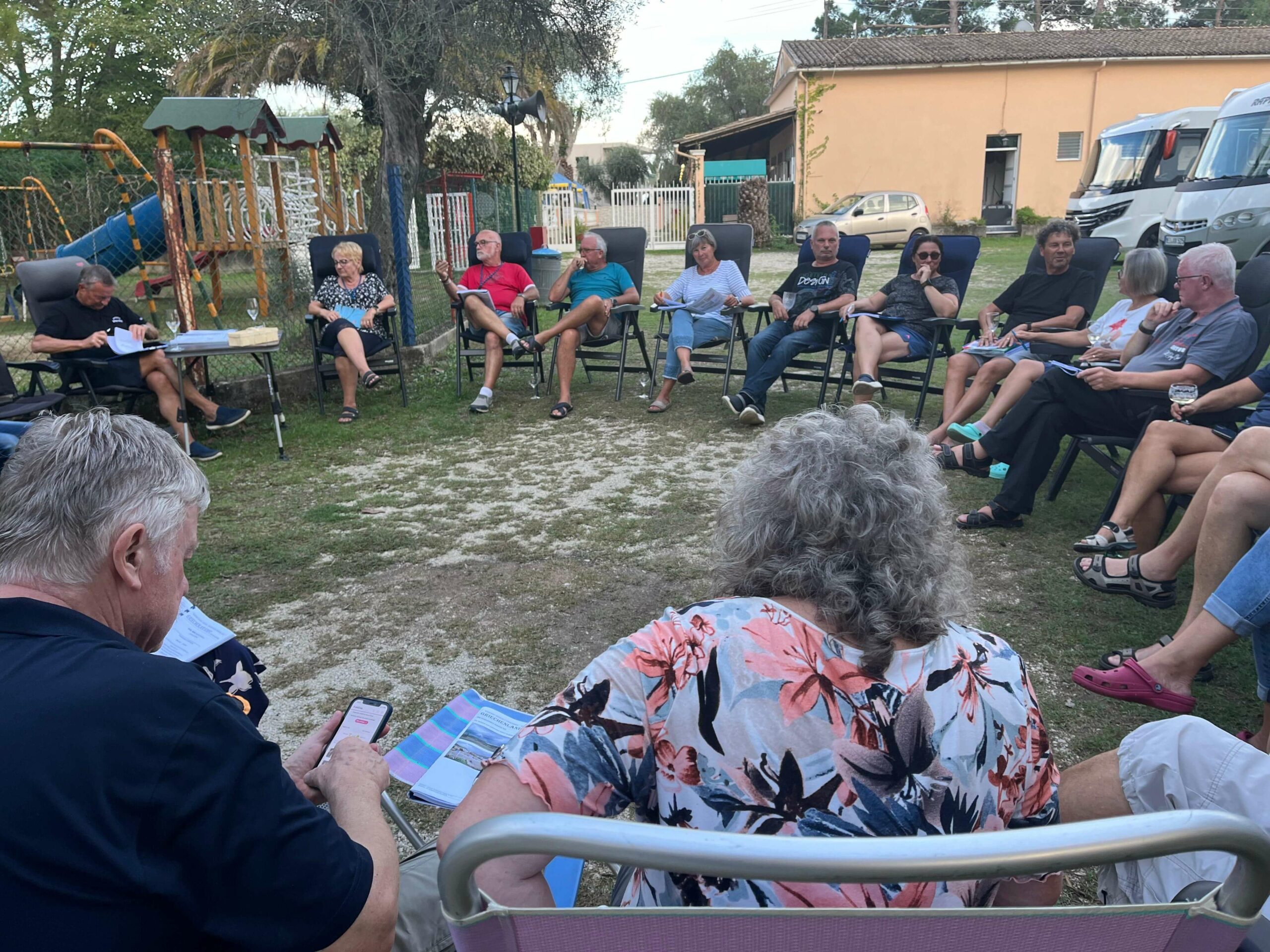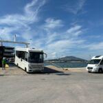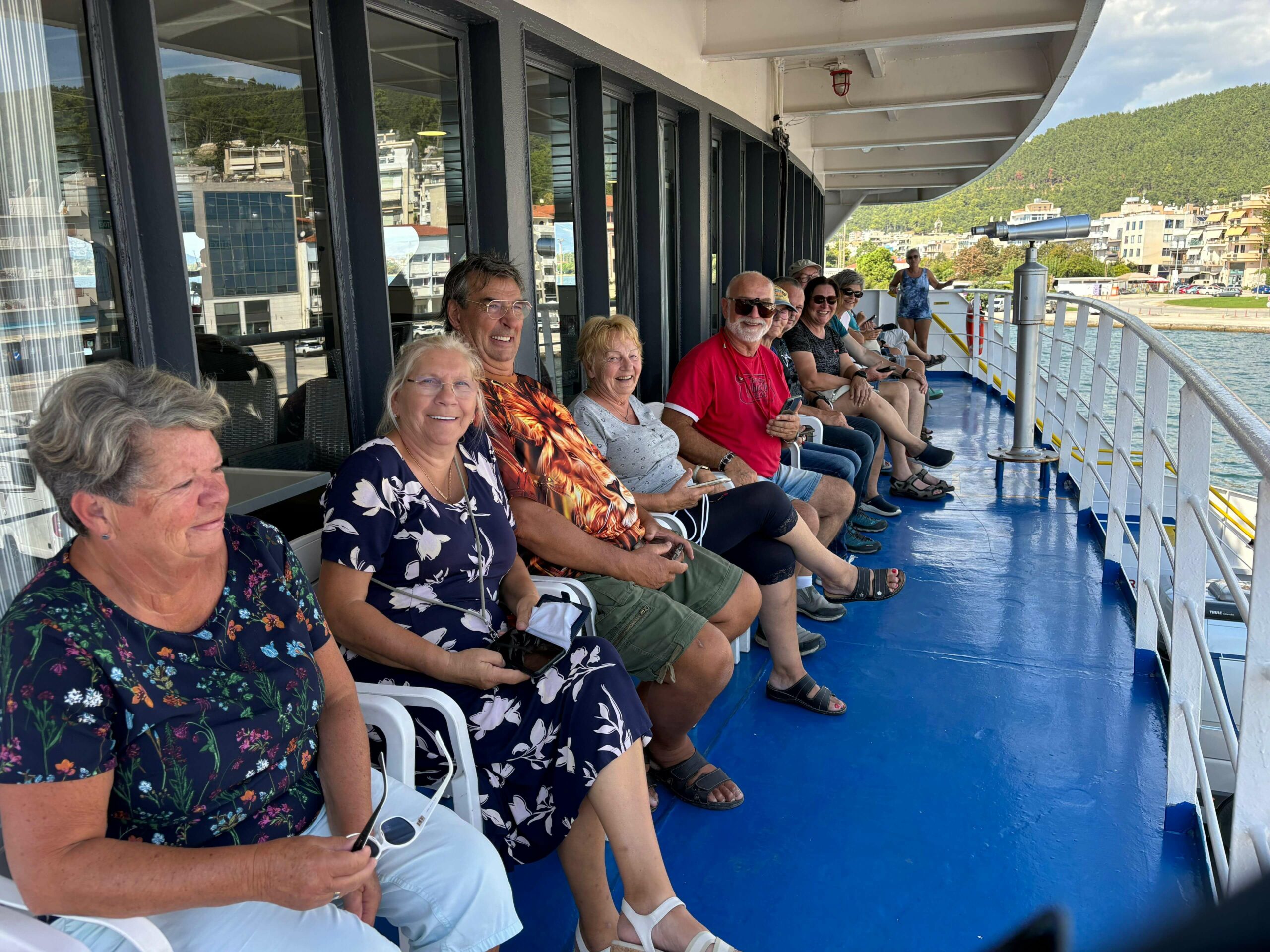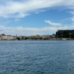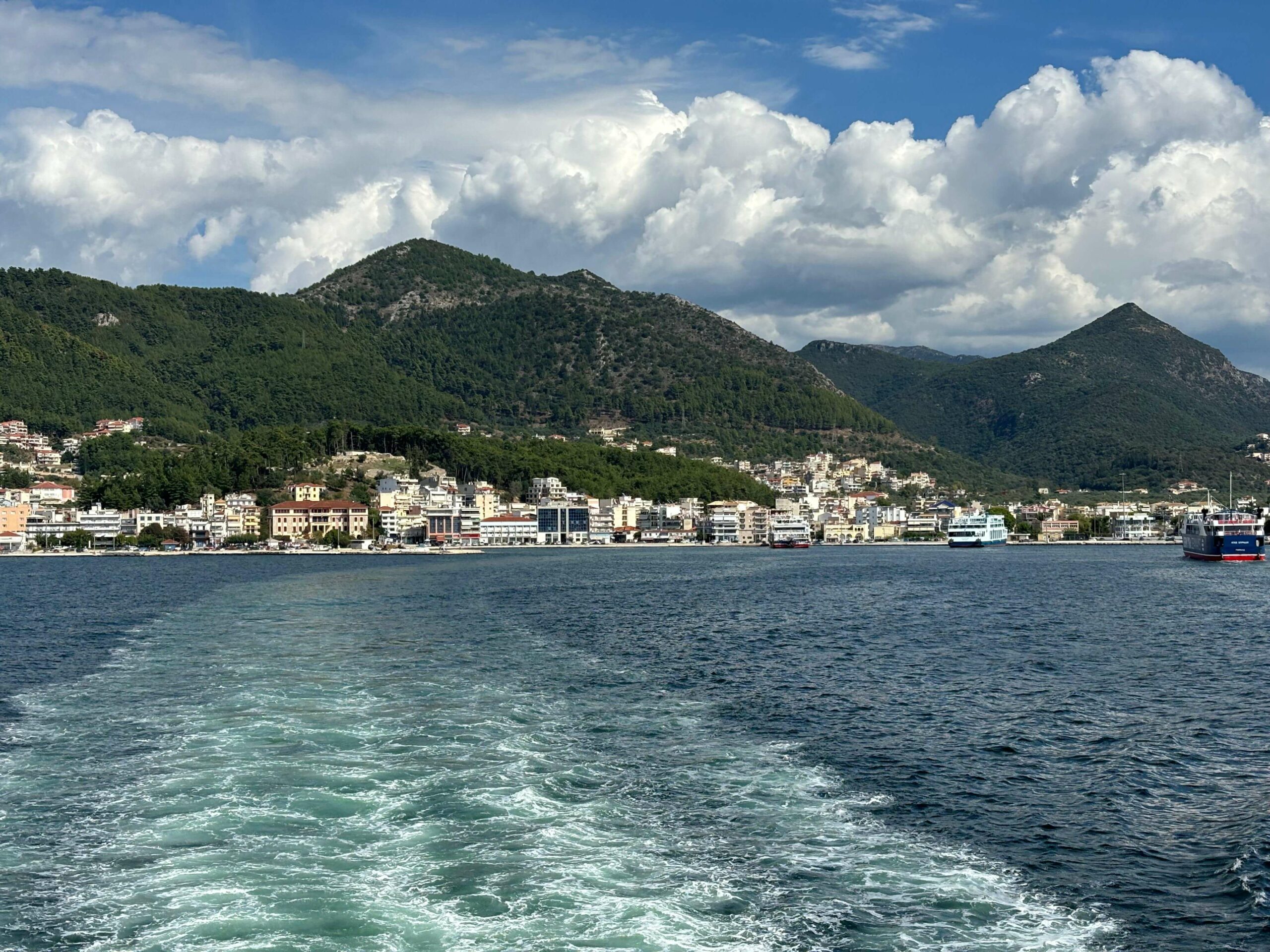 Nach einer ruhigen Überfahrt durch Adria und Mittelmeer erreichen wir bei bestem Wetter gegen Mittag Igoumenitsa. Hier wechseln wir kurz vom internationalen in den nationalen Hafen. Um 15:30 Uhr geht es mit der Fähre zu unserem Ziel für die nächsten zwei Tage, nach Korfu. Nach kurzer Fahrt erreichen wir gut gelaunt gegen 17 Uhr die Insel und nehmen die Fahrt zu unserem ersten Campingplatz in Angriff. Nachdem alle ihren Platz gefunden und sich eingerichtet haben, treffen wir uns zu unserer ersten gemeinsamen Besprechung. Mit einem Gläschen Sekt stoßen wir auf eine gute und unfallfreie Rundreise an. Nach einer kurzen Vorstellungsrunde besprechen wir die notwendigen organisatorischen Dinge der Tour und das Programm für die nächsten zwei Tage auf Korfu. Am Abend gehen einige in eines der vielen Restaurants am Strand oder am Campingplatz zum Abendessen. Andere gehen schnell auf eine Runde schwimmen ins Mittelmeer oder entspannen im Wohnmobil.