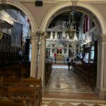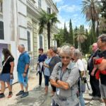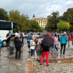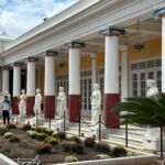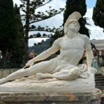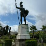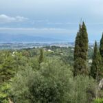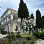 Pünktlich zum Start unserer heutigen Rundfahrt mit dem Reisebus hat der Regen nachgelassen. Unsere Fahrt führt uns zuerst zur Halbinsel Kanoni, vorbei an der spektakulären Landebahn des Flughafens direkt am Meer. Bei einem hochgelegenen kurzen Fotostopp haben wir einen schönen Blick auf die Mäuseinsel mit dem vorgelagerten Vlachernakloster, das Postkartenmotiv Korfus. Auch die Starts und Landungen der Flugzeuge lassen sich von ihr oben gut beobachten. Danach setzen wir unsere Fahrt nach Korfu-Stadt fort, kommen an der Ionischen Akademie, der ersten Universität Griechenlands, vorbei und steigen an der Alten Festung aus. Dann führt uns Christine, unser heutiger Guide, durch die Altstadt. Dabei kommen wir u. a. vorbei am Rathaus, der ersten Bank Griechenlands und der Spiridonkirche, die wir auch kurz besichtigen. Danach haben wir alle Gelegenheit, auf eigene Faust die engen Gassen der Altstadt zu erkunden oder in einem der Cafés einen Cappuccino zu genießen. Nun geht es weiter ins Achilleon. Dort können wir leider nur die Außenanlagen mit Park des sogenannten Sissi-Schlosses besichtigen. Aber wir haben hier auch eine schöne Aussicht in Richtung Festland und können im Park noch die Statue des Achilleus, dem größten griechischen Helden des trojanischen Krieges, bewundern. Nikos, unser heutiger Busfahrer, bringt uns nun in die Berge zum Weingut Ambelonas, wo wir wieder ein sehr gutes Mittagessen serviert bekommen. Weiter geht es nun nach Paleokastritsa auf die Westseite der Insel. Hier hat der Tourismus von Korfu seinen Ausgangspunkt. Danach geht es über Lakonas und den Trompetenpass wieder zurück nach Dassia zu unserem Campingplatz. Alle sind wir uns einig, es war trotz kurzer Schauer ein sehr schöner und erlebnisreicher Tag. Nun steht nur noch unsere Besprechung des nächsten Fahrtages an und alle können den Abend gemütlich ausklingen lassen.