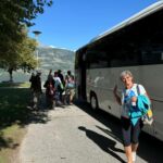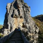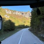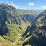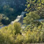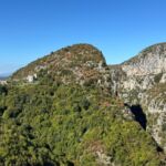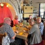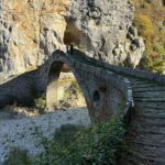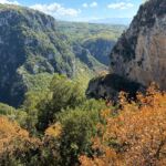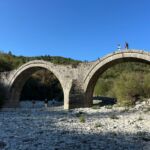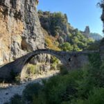Wir starten wieder zeitig mit unserem Reisebus und María, unserem Guide für heute, in die großartige Bergwelt im Hinterland Ioanninas, der Hauptstadt der Region Epirus. Unser Ziel, die Zagori bietet 46 uralte Dörfer, sehr alte Steinbrücken, tiefe Schluchten und viel unberührte Natur. Nach kurzer Fahrt und etwas Höhengewinn lassen wir den Morgennebel unter uns und genießen die Sonne. Unseren ersten kurzen Halt legen wir am Denkmal der Frauen von Zagori ein. Danach halten wir an der Koukoulibrücke, welche bereits 1750 erbaut wurde. Sie hat eine Spannweite von 16 Metern und wurde sofort fotografiert und überquert. Unser nächster Stopp ist an der Kalogerikobrücke, eine dreibogige Steinbrücke mit einer Gesamtspannweite von 55 Metern, erbaut im Jahre 1814. Im Dorf Kipi legen wir eine kurze Pause für einen kleinen Spaziergang oder einen Kaffee ein. Für Beate gab es mit Hilfe der Reiseleitung die Möglichkeit, ihre Schuhe neu zu besohlen. Die Sohlen hatten sich an der letzten Brücke beide gleichzeitig gelöst. Nach dieser Pause setzen wir unsere Fahrt durch die schöne Bergwelt fort und gelangen zu einem Aussichtspunkt auf die Vradheto Steps, eine Treppe mit ca. 1.100 Stufen. Die Bauzeit betrug mehr als 20 Jahre und sie verbindet zwei Dörfer miteinander. Weiter geht es durch kleine Dörfer nach Monodentri, ein Dorf knapp über 1.000 m ü. NN. Von unserem Bus müssen wir einen Kilometer laufen, um das kleine Kloster des hl. Paraskevi aus dem Jahre 1412 und den fantastischen Blick in die Vikosschlicht zu bewundern. Die Schlucht hat sogar einen Eintrag im Guinness Buch der Rekorde wegen ihrer Einmaligkeit des Verhältnisses von Breite und Tiefe. Sie ist übrigens ca. 1.000 m lang und zwischen 600 und 1.000 m tief. In Monodentri erwartet uns dann auch wieder ein Mittagessen. Gut gelaunt treten wir mit unserer Busfahrerin Kalypso die Heimfahrt zum Campingplatz an. Um 18 Uhr haben wir dann unsere Besprechung der nächsten zwei Tage. Gudrun hat fünf Liter Rosewein spendiert, sodass die Besprechung in besonders lockerer Atmosphäre stattfindet. Danach genießen wir alle noch einen schönen Abend direkt am See Ioannina.