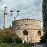 Bereits um 8:30 Uhr holen uns Kalypso unsere Busfahrerin, zusammen mit Eleni, unserem Guide für heute, vom Campingplatz ab. Wir fahren Richtung Thessaloniki, der zweitgrößten Stadt Griechenlands, gegründet 315 v. Chr. Nach etwa einer halben Stunde erreichen wir die ersten Gewerbegebiete, kommen im weiteren Verlauf am Gerichtsgebäude, Teilen der Stadtmauer, dem alten Zollamt am Hafen und dem Aristotelesplatz vorbei, bevor wir den Bus am Weißen Turm, dem Wahrzeichen von Thessaloniki, verlassen. Im 15./16. Jhd. errichtet, diente er früher als Befestigungsanlage, Garnision und Gefängnis, beherbergt heute ein Museum. Wir laufen zum Denkmal von Alexander des Großen, machen ein paar Fotos von der Promenade, dem Turm, dem königlichen Theater und setzen unsere Busrundfahrt fort. Wir fahren vorbei am Rathaus, dem Venizelosplatz, einigen Kirchen und Moscheen und steigen in der Oberstadt aus. Dort besichtigen wir den Trigonenturm. Er ist Teil der osmanischen Festungsmauer. Von hier haben wir einen schönen Ausblick auf Thessaloniki, die alte Festung und den Hafen. Danach fahren wir mit dem Bus weiter zur Kirche des hl. Dimitrios, dem Schutzpatron der Stadt. Nach einer kurzen Besichtigung bringt uns Kalypso noch zum Galeriusbogen, wo unsere Stadtrundfahrt endet. Wir laufen durch den spätrömischen Triumphbogen aus dem Jahre 306 n. Chr. zur Rotonda. Deren Kuppel hat einen Innendurchmesser von 24,50 Metern und war in der Zeit ihrer Erbauung im Jahre 306 n. Chr. die größte Ziegelkuppel der Welt. Danach laufen wir wieder zum Meer, da wir noch eine zusätzliche Schiffstour machen wollen. Leider haben die historischen Schiffe aufgrund des starken Windes schon den sicheren Hafen aufgesucht. Jetzt genießen wir unsere freie Zeit für ein gutes Mittagessen, weitere individuelle Besichtigungen oder einen Spaziergang an der schönen Promenade am Meer. Nach unserer Ankunft im Camp steht nun nur noch unsere Fahrerbesprechung für den Folgetag an.
