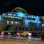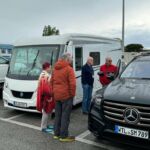 Nach einer Fahrt über die Alpen bei feuchtkaltem Wetter trifft sich ein Großteil der Reisegruppe bereits einen Tag früher auf einem Campingplatz nahe Ancona. Für einige ist es die erste Reise mit Kuga und es gibt viele Fragen, die wir bei einem gemeinsamen Essen im Restaurant des Camps schon mal versuchen, zu klären. Die Freude ist aber auch bei den „alten Hasen“ groß, mit dem Wohnmobil nach der Winterpause wieder auf Reisen zu gehen und ein interessantes Land zu erkunden. Da am nächsten Tag unsere Fährfahrt erst am Abend beginnt, nutzen wir die gewonnene Zeit, unsere Begrüßungsbesprechung schon im Camp durchzuführen. Gemeinsam beraten wir, wie die Tage und Wochen unserer Tour in Griechenland zu einem stressfreien und erholsamen Miteinander werden können. Danach folgt die erste Teilnehmerbesprechung für die nächsten beiden Tage in Meteora. Unsere Reise nach den Check-In-Formalitäten im Ferry Terminal startet dann mit dem Warten auf die Einschiffung. Wie mittlerweile üblich bei den Fähren von Ancona nach Igouminitsa wurde die Abfahrtszeit kurzfristig um mehrere Stunden nach hinten verschoben. Endlich sind wir mithilfe des Bordpersonals und der Erfahrungen der Fahrer und Beifahrer verladen und verlassen verspätet Ancona. Wir genießen wieder Camping on Bord, sodass sich nach einem Absacker mit Blick auf die nächtliche Adria alle in ihre Womos zum Schlaf zurückziehen. Nach einer anfangs stürmischen Nacht auf See und einem Frühstück im eigenen Womo versammeln wir uns an Bord, um uns mit dem von Kuga bereitgestellten Navi vertraut zu machen. Dann tauchen endlich Korfu und Albanien aus dem Ionischen Meer auf. Über die Straße von Korfu erreichen wir am späteren Nachmittag Igoumenitsa.