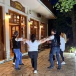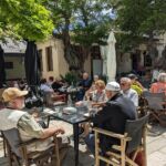Eigentlich wollten wir heute mit der historischen Eisenbahn von Ano Lechonia, dem unteren Bahnhof der Schmalspurbahn, nach Milies, dem oberen Bahnhof, fahren. Aber leider war die Strecke aufgrund des starken Unwetters im vergangenen Herbst noch immer nicht wieder befahrbar. Deshalb engagierte wir unseren Guide einen zweiten Tag für eine Rundfahrt über den südwestlichen Teil des Pilion. Auf unserem Weg zur Südspitze des Pilion zum Dorf Trikeri sahen wir noch viele Schäden des Unwetters vor einigen Monaten. Wir sahen jedoch auch eine zauberhafte Landschaft mit vielen Badebuchten und interessanten kleinen Dörfern. In Trikeri besuchten wir die Kirche, die einen Stuhl von Napoleon ihr Eigen nennt, den Handelsboote des Dorfes aus Barcelona mitgebracht haben. Bevor es zum gemeinsamen Abendessen ging, besprachen wir den morgigen Fahrtag. Nach dem leckeren Essen im Restaurant gab es noch einmal die Chance, etwas für die eigene Kondition zu tun. Eine Folkloregruppe zeigte uns, wie man auf Pilion tanzt. Dann konnten wir auch gemeinsam mit ihnen den Sirtaki tanzen. Es wurde ein schöner Abend, der sich bis in späte Stunden streckte. Jetzt freuen wir uns auf Delfi, Athen und die Peloponnes.