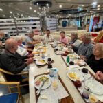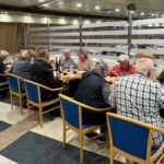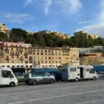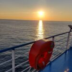 Nach einer Fahrt über die Alpen trifft sich ein Großteil der Reisegruppe bereits einen Tag früher auf einem Campingplatz nahe Ancona. Für einige ist es die erste Reise mit Kuga und es gibt viele Fragen, die wir bei einem gemeinsamen Essen im Restaurant des Camps schon mal versuchen, zu klären. Die Freude ist aber auch bei den „alten Hasen“ groß, mit dem Wohnmobil wieder ein neues Ziel anzusteuern und ein interessantes Land zu erkunden. Da am nächsten Tag unsere Fährfahrt erst am Abend beginnt, nutzen wir die gewonnene Zeit, die Ausgabe des Kuga-Equipment an die Anwesenden schon im Camp durchzuführen. Unsere Reise nach den Check-In-Formalitäten im Ferry Terminal startet dann mit dem Warten auf die Einschiffung. Endlich sind wir mithilfe des Bordpersonals und der Erfahrungen der Fahrer und Beifahrer verladen und verlassen Ancona. Am Abend treffen wir uns zu einem gemeinsamen Essen an Bord. Nach dem Abendessen genießen wir noch einem Absacker mit Blick auf die nächtliche Adria bevor sich alle in ihre Kabinen zum Schlaf zurückziehen.