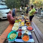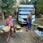 Die aufgehende Sonne versprach wieder einen heißen Tag. Den Vormittag konnte man geruhsam angehen. Einige nutzen die unmittelbare Nähe zur Mamure Kalesi, die am besten erhaltene mittelalterliche Burg an der türkischen Südküste, um dieser einen Besuch abzustatten. Für andere war ein Bustrip nach Anamur zum Kurzshopping angesagt. Es gab jedoch auch einen Höhepunkt an diesem Tag vorzubereiten. Leider ist die Halbzeit unserer Reise erreicht. Deshalb feiern wir heute unser Bergfest. Dazu werden jede Menge Kartoffeln gekocht, denn wir wollen einen Berg Bratkartoffeln produzieren. Am Nachmittag finden sich dann viele Helfer zum Pellen und Schnippeln. Nach der Besprechung des nächsten Fahrtages werden mehrere Bratpfannen angeworfen und dann gibt es zu Salaten, die einige beigesteuert haben und selbst gebratenen Steaks und Würsten, leckere Bratkartoffeln aus verschiedenen nationalen Pfannen. Egal, ob die Bratkartoffeln aus der Schweiz, Österreich, Berlin oder Franken waren, sie schmeckten prima und machten alle satt. Mit lustigen Beiträgen und Oktoberfestmusik verging anschließend die Zeit wie im Flug. Gut, dass morgen wieder ein Tag zum Ausschlafen ist.