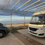 Von Sithonia geht es in Richtung Bulgarien und Türkei – weiter ostwärts über Kavala nach Alexandropulis in die Region Ostmakedonien/Thrakien. Bei dieser Route war der Weg das Ziel. Auf traumhaften Küstenstraßen führte die Fahrt vorbei an kleinen Buchten mit Sandstränden, an steilen Hängen links und rechts der kurvigen Straße, durch Hohlwege und immer wieder gab es tolle Ausblicke auf das Meer. Und natürlich war auch die eine oder andere Sehenswürdigkeit an der Strecke, die zum Halt einluden, wie der Löwe von Amphipolis. Den Rest der Strecke erfuhren wir über die Autobahn zur Türkei. Auf unserem CP in Alexandroupolis stehen wir direkt am Meer. Das anhaltend warme Wetter sorgte auch hier dafür, dass einige den Strand des Thrakischen Meeres zum Sonnenbaden nutzten. Am Abend treffen wir uns zur Teilnehmerbesprechung. Wir wollen am nächsten Tag in die Türkei einreisen und da gibt es viele Fragen zu klären. Später erlebten wir einen traumhaften Sonnenuntergang.