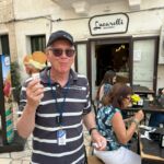 Heute hatten wir einen besonders schönen und erlebnisreichen Tag. Unser Busfahrer zeigte uns, wie man in Bari fahren muss und können muss. Dort war heute der Stadtmarathon und viele Straßen waren gesperrt. Unser Fahrer Vito brachte es aber trotzdem fertig, uns in die Nähe unseres Zieles zu bringen. Das brachte ihm viel Applaus ein. Bari ist die Hauptstadt der Region Apulien. Die Altstadt mit ihrem Gassengewirr liegt zwischen den beiden Häfen. Wir besichtigten die Kathedrale San Sabino, schlenderten an der Burg vorbei und dann zur Basilika San Nicola aus dem 11. Jahrhundert. Dort werden die Überreste des Heiligen Nikolaus aufbewahrt. Die Stadt mit ihrer vielfältigen Gastronomie zeigte uns auch die kulinarische Vielfalt Apuliens. Auf eigene Faust probierte jeder in einer anderen Gastronomie verschiedene Köstlichkeiten.