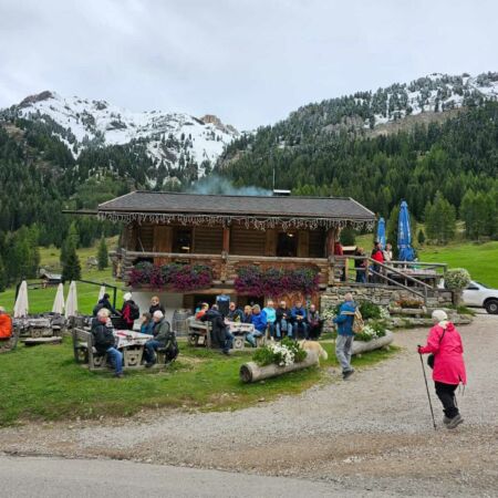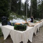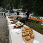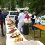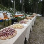 Auf halber Strecke gab es dann eine Überraschung für die Wanderer: eine Stärkung mit verschiedenen Kuchensorten, Schüttelbrot, Brötchen, Südtiroler Schinkenspeck, zwei typischen Südtiroler Käsesorten, dazu Glühwein, Tee und Bier, von KUGA organisiert.