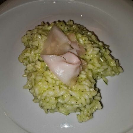 Als 2. Gang: Carnaroli-Risotto mit Kräutern und Bergschmalz.