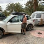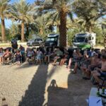 Heute liegt eine lange Strecke vor uns. Für die knapp 250 Kilometer planen wir fünf bis sechs Stunden Fahrzeit ein. Am Ende dieses Tages sagen die meisten von uns, dass es die schönste Strecke bisher gewesen sei. Wir fahren über Gebirgspässe des Antiatlas bis auf 1815 Meter und passieren eine sehr abwechslungsreiche und atemberaubende Landschaft. Hinter jeder Biegung tauchen neue Bilder auf. Wir sehen Frauen nach Futter und Kräutern graben und bepackt, mit krummen Rücken heimwärts laufen. Einmal sehen wir, wie der Mann seiner schwer tragenden Frau lastfrei hinterherläuft. Wir können Frauen in Brunnen Wasser schöpfend beobachten. Wir fahren vorbei an Terrassen, angelegt in der kargen Landschaft, um Mandelbäumen etwas Wasser zu sichern. Ein Fußballfeld ist an der Straße zu sehen, ohne dass Häuser weit und breit zu finden sind. Und immer wieder tauchen Oasen mit Dattelpalmen und gut angelegten Gemüsegärten auf. Menschen winken uns zu oder erwidern unseren Gruß. Es erstaunt uns immer wieder, was die Menschen hier der kargen Landschaft abgewinnen und wie gut sie scheinbar mit ihrem Leben in dieser unwirtlichen Gegend klarkommen. Auf sehr guten Straßen auf der gesamten Strecke erreichen wir, trotz der vielen zurückgelegten Kilometer, entspannt den Campingplatz bei Tata. Unser Mitfahrer Wolfgang versuchte sich heute zusätzlich an einer 50 Kilometer langen Offroadstrecke. Er hat wohl Appetit bekommen, da am letzten Campingplatz eine Gruppe mit Offroadern pausierte. Aber die Crew des Campingplatzes eilte sofort zur Fahrzeugreinigung herbei. Der restliche Teil des Tages dient der Erholung und Entspannung. Da wir heute Bergfest haben, gibt es zur Fahrerbesprechung für alle ein Glas Sekt zur Feier des Tages, spendiert von Reinhard und Waltraud. Danach treffen wir uns im schön bepflanzten Innenhof des zum Camp gehörenden Hotels zum Abendessen im Restaurant. Der Abend klingt wie immer in gemütlichen Runden bei einem guten Wein aus.