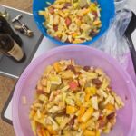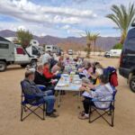 Fleißige marokkanische Handwerker sorgen dafür, dass das ein oder andere Fahrzeug optisch wieder besser aussieht. Ab 16:00 Uhr steht dann unsere Campertafel an. Für reichlich Essen ist gesorgt, auch genügend Getränke sind dank Spendern und KUGA vorhanden. Als Vorspeise gibt es noch eine russische Soljanka, natürlich stilecht mit Wodka. Sieht es am Anfang so aus, als würde alles vom Winde verweht, beruhigt sich das Wetter pünktlich zum Beginn und es wird für alle ein toller Abend.
