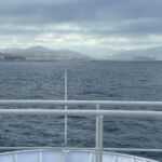 Nach einer windigen und etwas unruhigen Nacht starten alle gegen 8.00 Uhr zum Hafen in Algeciras. Das Einchecken läuft problemlos. Mit nur 15 Minuten Verspätung, also afrikanisch pünktlich, legen wir ab. Es folgt die Passkontrolle an Bord, der Gang durch den Duty-Free Shop, ein Kaffee, und dann sind wir auch schon fast auf der anderen Seite. Wir hatten alle mit einer unruhigen Überfahrt gerechnet, aber es blieb verhältnismäßig sanft.
