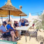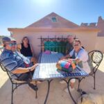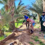 Nach dem Frühstück führt uns Zaid durch die nahegelegene Oase, die von 48 Familien bewohnt und bewirtschaftet wird. Wir erfahren, was man dort anbaut, wie die Bewässerung erfolgt und wie die Aufgaben verteilt sind. Danach kehren wir zu einer kleinen Pause bei Tee, Kaffee oder Limo ein. Der Weg zurück zum Camp wird dann noch mit einem kurzen Besuch im Berbershop unterbrochen, wo uns unterschiedliche Artikel aus der Herstellung der Berberfamilien gezeigt und angeboten werden.