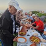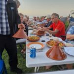 Am Abend im Camp feiern wir dann natürlich Heinrichs Geburtstag nach der Besprechung noch ausgiebig. Auf diesem Wege auch hier nochmals: Herzlichen Glückwunsch. Unser Abendessen besteht aus Tajinen mit Hühnchen, geliefert an unsere Sitzplätze. Unser Zaid hat sich für uns wieder etwas Gutes einfallen lassen. Ein lauer Abend mit Blick aufs Wasser, mit netten Menschen, was will man mehr.