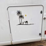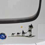 Nach dem Frühstück mit den wieder von Zaid besorgten Baguettes schauen wir uns die Ergebnisse der Wohnmobil-Verschönerung durch die einheimischen Künstler an. Wer wollte, konnte sich auf sein Wohnmobil ein Wüstenbild malen lassen. Mittlerweile ein beliebtes Erkennungsmerkmal für Marokko-Fahrer.