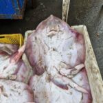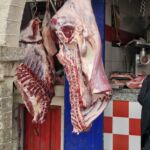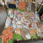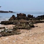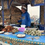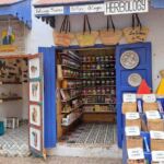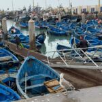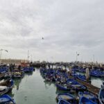 Wir steigen in 2 kleine Busse und fahren dann nach Essaouira. Mit einem kleinen Fotostop zwischendrin fahren wir direkt zum Parkplatz des Hafens. Es herrscht ein unbeschreibliches Gewusel und ein Geruch, von dem wir alle bald die Nase voll haben. Aber der Blick auf die blauen Boote, vom Hafen auf die Festung, die Auslagen der Händler, ist interessant und sehr eindrucksvoll.