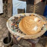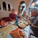 Wir gehen dann zu einem Mittagessen in ein typisches Restaurant und erhalten dort ein Menü mit Fisch-Tajine. Wieder haben wir etwas Neues kennengelernt. Nachdem wir alle gesättigt sind, geht es noch zu einem Besuch in die Medina, der Altstadt und die Souks. Wir schauen uns Handwerker an, lassen uns etwas über Holzverarbeitung erklären, bummeln und lassen es uns gut gehen. Zurück im Camp erfolgt die Besprechung der nächsten Tage, Gabi und Christoph haben ein Fässchen spendiert und wir genießen den Abend.