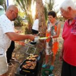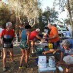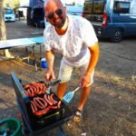Der Ruhetag bietet sich für unsere erste Campertafel am Abend an. Fleißige Hände stellen die lange Tafel zusammen.