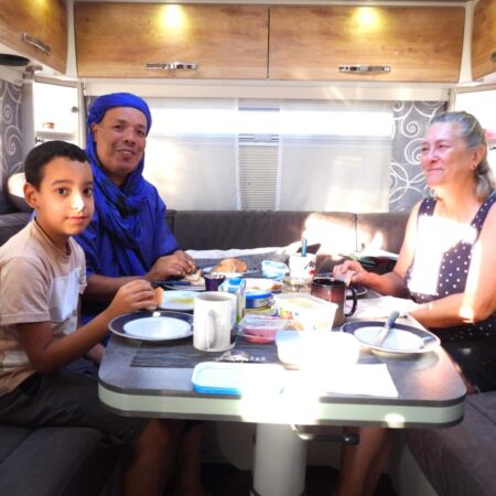 Wir starten den Tag mit einem gemeinsamen Frühstück mit Zaid und seinem Sohn Omar in unserem WOMO.