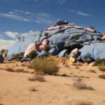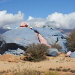 Weiter geht es zu den blauen Steinen. Ein belgischer Künstler hatte die Idee, Felsen im steinigen Gebirge mit blauer Farbe zu bemalen. Dazu schleppte er 20.000Kg blauer Farbe in die Steinwüste, heute ein beliebtes Touristenziel.