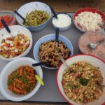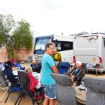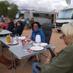 Zum Abend haben fleißige Hände die „KUGA-Campertafel“ vorbereitet. Lange Tafel, Salatbuffet und Getränketisch.
