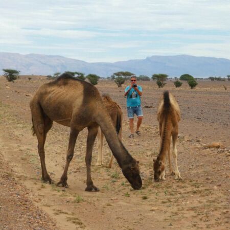 Kurz vor unserem Tagesziel treffen wir auf offensichtlich frei lebende Dromedare.