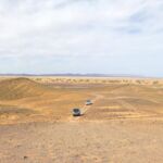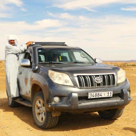 Unterwegs nehmen wir in der Wüste einen Anhalter auf dem Trittbrett mit, hier sieht man so etwas nicht so eng.