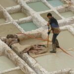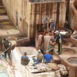 Ein weiterer Höhepunkt unseres Tagesausflugs ist der Besuch in einer Gerberei. Ziegen-Leder, Dromedar-Leder … werden in Tonkübeln gegerbt, was schon einen gewöhnungsbedürftigen Geruch verbreitet. Nach entsprechender Vorbereitung des Leders erfolgt in anderen Kübeln die individuelle Färbung.