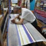 Die nächste Station bei unserem Stadtrundgang ist eine Tuchfabrik. Wir beobachten, wie mit manuell betriebenen Maschinen herrliche Tuchprodukte hergestellt werden.