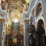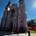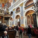 Unser Marjellchen holte uns pünktlich mit Yannick um 9:00 Uhr ab. Wir fuhren wunderschön durch die Johannisburger Heide, mit über 1000 km² das größte Waldgebiet Polens, dieses Waldgebiet ist nicht nur die Heimat von vielen Wildtieren, wie zum Beispiel dem Luchs, den über 3000 Elchen und auch etwa 20 Wolfsrudel, sondern auch ein Eldorado für Wassersportler. Doch zunächst führte uns Marjellchen zu einem faszinierenden Wallfahrtsort, der Kirche zur Heiligen Linde. Die Kirche gilt als einer der bekanntesten polnischen Wallfahrtsorte. In dem, bis 1945 ostpreußischen Ort, wurde von Jesuiten die Barockwallfahrtskirche Heiligelinde gebaut. Die heutige Basilika mit Kreuzgang und Orden gehört zu dem bedeutendsten Baudenkmäler des Barock in Nordpolen. Bereits von außen ist dies eine imposante Erscheinung, im Inneren wird man von der Wucht und dem Glanz des Barock, sowie der Vielzahl an beeindruckenden Details sofort fasziniert und kommt aus dem Staunen nicht heraus.