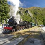 Was Unternehmungen am Ruhetag in Queenstown betrifft, gibt es eine große Auswahl. Queenstowns Gardens, Kiwi Vogelwelt, Dampfschifffahrt, eine Fahrt mit dem Kingstonflyer und vieles mehr. Wir entscheiden uns für die Fahrt mit der historischen Eisenbahn aus dem 19. Jhdt und fahren raus zum Bahnhof nach Kingston. Hier wird schon fleißig rangiert, die historischen Wagen werden an die genauso historische Lock gekoppelt…