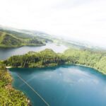 Die Sicherheitseinweisung ist schnell erledigt und schnell sind wir über dem See auf dem Weg zu den Vulkankratern.