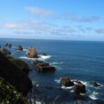 Bald biegen wir ab auf die Southern Scenic Route, die dem heutigen sonnigen Tag viele landschaftliche Höhepunkte bietet. Wir sind am Kaka Point, einem kleinen beschaulichen Ort mit einem ruhigen Sandstrand und haben von hier bereits einen Blick auf den Nugget Point.