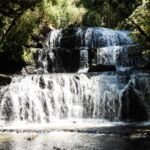 Bei Owaka kommen wir zum südlichsten Punkt unserer Neuseeland-Reise und erreichen bald den Purakaunui-Fall, eine Kaskade für Süd-Ost-Neuseeland zu dienen. Durch einen urwaldartigen Weg gelangen wir zum Purakaunui. Der Wasserfall ist auf einer neuseeländischen Briefmarke von 1976 abgebildet.