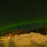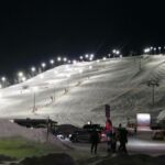 Vom Camp sind es nur wenige Meter bis zu den Skipisten, die bei der Dunkelheit gut ausgeleuchtet sind.