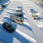 Zur abendlichen Fahrerbesprechung treffen wir uns im geheizten Aufenthaltsraum des Camps. Frank und Angela haben eine Überraschung in Form von Griebenschmalzbroten vorbereitet. Dazu gehören das ein oder andere Getränk bis hin zum ukrainischen Wodka, der bis zur norwegischen Grenze aufgebraucht sein muss.