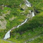 Heute sind 273 km zu bewältigen, viele davon im Tunnel und sogar mit der Fähre. Zunächst ging es nach Norden zum Sognefjord den wir mit der Fähre überschreiten. Weiter ging es immer am Fjord entlang nach Osten. Unterwegs bewunderten wir die für hiesige Verhältnisse vielen Obstbaumplantagen. Da die Straße auch hier stellenweise eng war, mussten besonders unsere großen Fahrzeuge sicher manövrieren. Bis wir schließlich unser Ziel erreichten kamen viele Kilometer Fahrstrecke im Tunnel zusammen und am Ziel in Fjaerland grüßten die ersten Gletscher, teilweise noch in den Wolken.