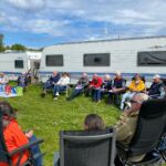 Um 15 Uhr treffen wir uns an unserem Wohnmobil zur offiziellen Begrüßung. Wir haben Gelegenheit, uns kennenzulernen. Wir stoßen gemeinsam auf eine erfolgreiche Reise an. Einige kennen sich schon von früheren Kuga-Reisen, für andere ist es die erste Gruppenreise mit Kuga. Wir sind also eine bunt gemischte Gruppe aus Deutschland, Schweiz, Österreich, Lichtenstein und Luxemburg. Und: wir sind eine fröhliche Gruppe, der auch das heute kalte und raue Ostseewetter mit ständigem Wind nichts anhaben kann. Unsere Reiseleiter stellen uns die Reise und deren generellen Ablauf vor. Wir besprechen unseren ersten morgigen Fahrtag, der uns über Roskilde nach Kopenhagen führt.