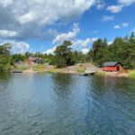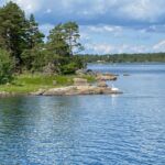 Dann geht es an der Küste entlang Richtung Süden. Bald erreichen wir die Schären. Wir sind beeindruckt von der Schönheit der Landschaft. Auf kleinen, von den Gletschern der Eiszeit glatt geschliffenen Inseln befinden sich im Schutz von Bäumen kleine Sommerhäuser. Die Felsen bieten natürliche Badebuchten. Das ist Natur pur!