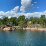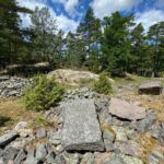 Da es hier viele gefährliche Untiefen gibt, ist die Fahrrinne des Schiffes mit Leitpfosten markiert. Auf der Insel Näset legt unser Schiff an. Dort befindet sich ein alter Granitsteinbruch, der vor fast 100 Jahren aufgegeben wurde. Der hochwertige Granit wurde in alle Welt geliefert. Die Geschichte dazu wird mit Schautafeln schön illustriert, während sich die Natur den Steinbruch wieder zurückholt.