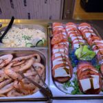 Anschließend genießen wir unser vorzügliches Abschiedsessen im Restaurant am Campingplatz. Das üppige Buffet lässt keine Wünsche offen, dazu Wein und Bier, ein echtes kulinarisches Highlight!