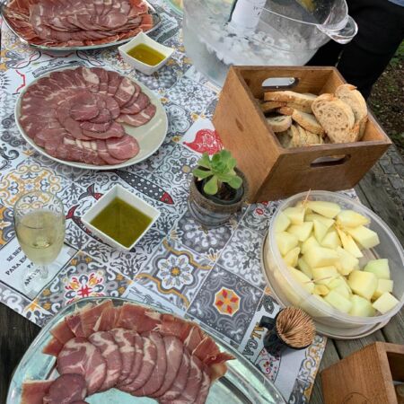Am späten Nachmittag, nach unserer obligatorischen Besprechung, veranstalten die Inhaber des Campingplatzes für uns eine Schinkenverkostung mit dem hier typischen jungen Wein Vinho Verde.