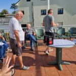 Petrus hat uns wieder lieb. Die 6 neuen Mitfahrer nach Portugal sind schon auf dem Platz und so können wir alle darüber informieren, dass heute in O Grove das jährliche Seafood-Festival stattfindet. Der Hinweis wird gerne aufgenommen, fast alle begeben sich auf die ein oder andere Weise in den Hafenbereich und genießen das Spektakel. Deshalb findet unsere Start-Besprechung auch erst etwas später statt, damit alle die Zeit in O Grove entspannt verbringen können.