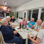Traditionell findet unsere 1. Besprechung mit KUGA-Wein statt und nach der Verteilung und Erklärung der Navis beginnt unser Begrüßungsessen. Schnell lernt man sich kennen und es vergeht eine sehr angenehme Zeit. Gegen 21.00 Uhr können wir von der Terrasse der Cafeteria des Campingplatzes noch ein Feuerwerk genießen. Da sage noch einer, KUGA hat nicht an alles gedacht.